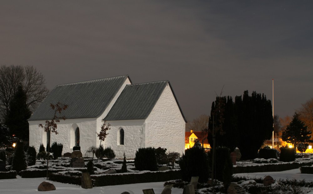 Her er vores smukke kirke fotograferet i måneskinnet kl. 22.30 en aften i januar 2016....